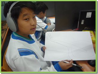 我們從畫草稿、著色到細部加強,大約花了三次集會的時間,每個人都想拿出一張令人眼睛為之一亮的圖畫,所以不時問同伴意見,甚至請老師給建議。有人是邊聽音樂邊完成的,有人則是邊看照片邊修正,結果大家的作品陸陸續續出爐了! |