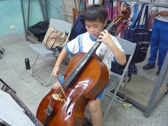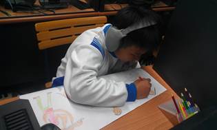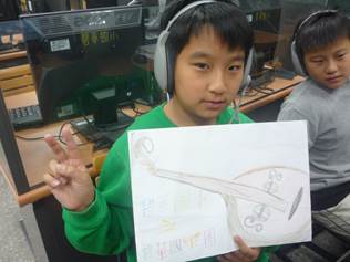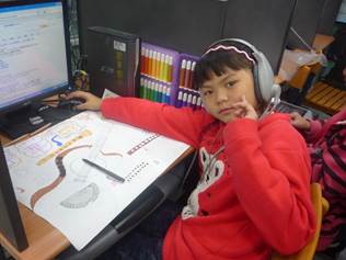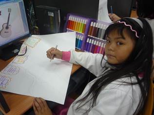 今天,老師的電腦本來沒辦法開機,所以老師叫我們先畫國樂團的圖畫,當我們在畫畫時,老師的電腦就可以開機了,也可以上網了,所以我們大家都很開心!當我們在畫畫時,老師幫我們拍照。