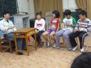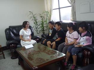 今天我帶著興奮的心情,來到圖書館,因為今天第三組要訪問訓導主任。而我們這一組必須負責攝影和拍照,我從不同角度拍了許多照片,有獨照,也有合照,記錄下大家的認真的表情。我希望下次我採訪校長時能更好。