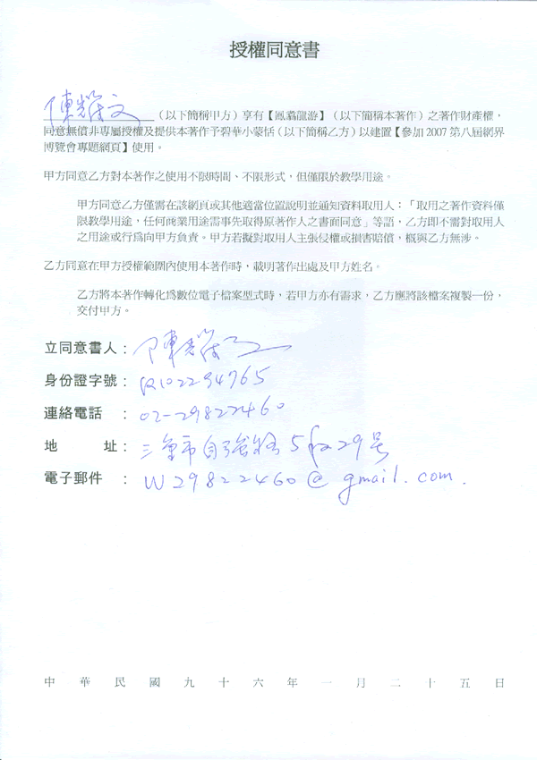 部分網頁內容引用文山社陳耀文先生之口述及其著作 - 鳳翥龍游, 請參見下列授權書。