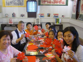 李老師ㄧ到,就拿出剪刀和色紙。「來!小朋友,我們來學剪紙吧!」。真是太棒了!老師ㄧ來就立刻教我們剪紙。李老師總共教了壽字、囍字、桃花、梅花、星星、鳳梨等等。李老師的剪紙技巧真是讓我們嘆為觀止,也讓我們的收穫卻滿滿一行囊。