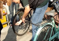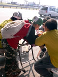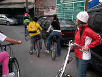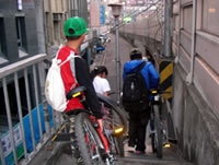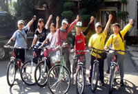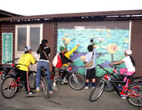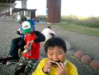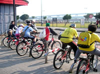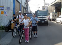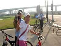 等到吃完東西的時候, 時間已經快接近四點了, 於是我們又趕緊出發, 希望能快點回到學校。不過一路上都不太順利, 先是在運動公園附近遇到施工, 來來往往的水泥車加上凹凸不平的路面, 讓我們其中幾個不太會騎腳踏車的同學因為太過緊張, 所以跌倒了。之後來到台北橋一帶, 又因為蓋捷運的關係, 所以腳踏車道被中斷, 害得我們找不到路, 只好將腳踏車牽上台北橋的引道, 之後再想辦法繞進去自行車道。不過因為指標都不是很清楚, 而且腳踏車很重, 所以我們牽來牽去的, 到最後不但沒力氣, 也迷路了, 真的是很慘!眼看天都要黑了, 所以老師趕緊問路, 最後是好心的路人帶路, 我們才能順利回到學校, 結束這有驚無險又豐富的一天。