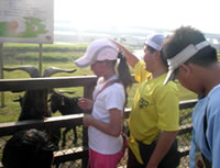 也不知道又騎了多久, 我們感覺到人群變多了, 不遠處似乎也出現了幾個零星的小攤子, 看了一下地圖與附近標示, 才知道我們所在的位置是二重租借站。二重租借站的借車方式很有系統, 是用刷條碼的方式, 所以借車的速度滿快的, 而這裡因為鄰近疏洪親水公園, 所以人潮非常多!加上二重租借站佔地非常龐大, 所以有很多大朋友、小朋友租了腳踏車之後就直接在這附近騎, 也就讓這裡變得更加熱鬧了!除了人潮以外, 這裡還有小朋友們最喜歡的動物區, 裡面有可愛又溫馴的羊咩咩, 還有一大群鴿子, 我們在這裡跟其他遊客一起搶著餵羊, 餵到都忘記我們在趕路了, 真是有趣。跟微風站比較起來, 這個租借站真的好玩很多。