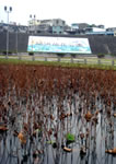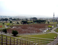 離開了意猶未盡的羊咩咩草原, 我們最想找到的下一個景點就是─荷花池, 不過很可惜, 因為季節不對, 我們經過荷花池時, 不但沒看到美麗盛開的荷花, 就連荷葉都沒有看到!只有滿池的蓮蓬, 還有一地的落葉, 看起來有點滄涼。而且不但是荷花池, 就連中山橋下名氣很大的“花海”都沒有看到!只剩一大片綠油油的草地, 我們就猜想:該不會因為經濟不景氣, 所以連花的種子都沒買吧?真是讓我們好失望。