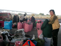 而且失望的不止這些, 本來想說趁這次來二重環狀自行車道, 可以順便逛逛很有名的重新橋跳蚤市場, 因為資料上說它是全台灣最大的二手市場, 可是因為我們前面找路還有貪玩花了太多的時間, 所以到這裡的時候攤位都已經準備在收了, 就只差那麼一點點的時間, 真是殘念…!還好吃的攤位沒有收, 所以我們趕緊發揮貪吃的本性, 又繼續坐下來吃了一頓, 而且我們有同學在這裡還發現了一位電視上拍片的明星在賣麵, 所以我們就很高興的過去跟她合照, 所以還算是小有收穫。
