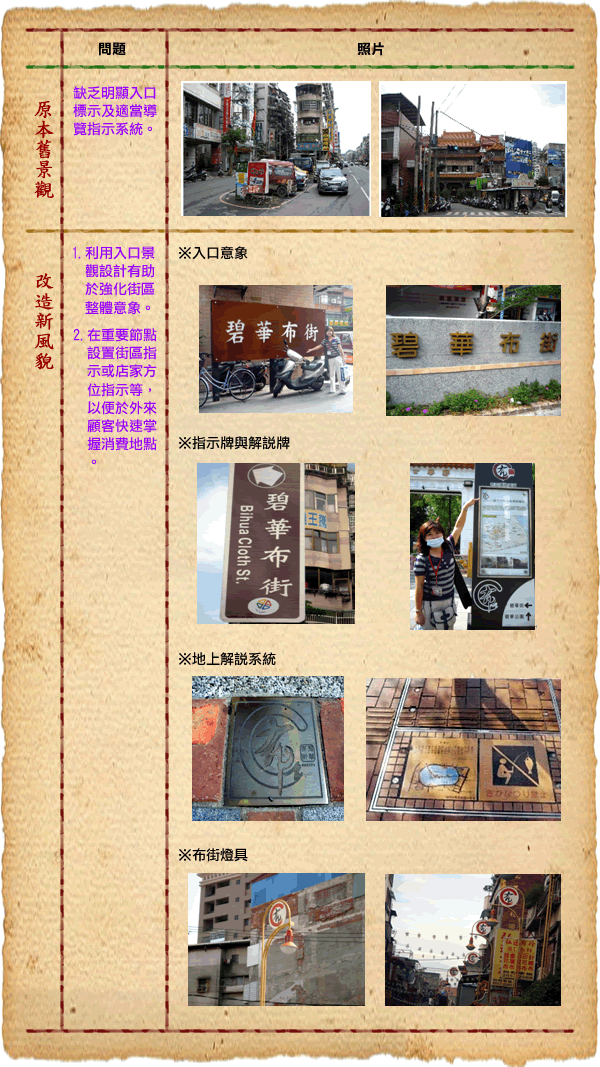 捷運動線為布莊博物園區通往大台北地區之重要節點,在整體規劃上扮演園區動線主要出入口,因此設置鮮明的入口意象、指示系統、布街導覽、燈具、時尚秀場、布幔廣場等,使街道行成『布街文化廊道』。