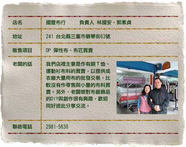 ◎資料來源:三重布莊博物園區 http://www.bhes.tpc.edu.tw/~clothweb/