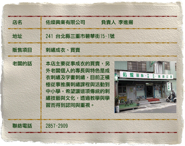 ◎資料來源:三重布莊博物園區 http://www.bhes.tpc.edu.tw/~clothweb/