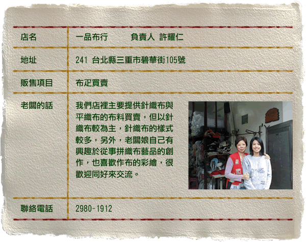 ◎資料來源:三重布莊博物園區 http://www.bhes.tpc.edu.tw/~clothweb/