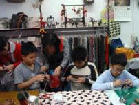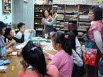 雖然在學校的藝文課上過縫紉課,不過穿針和打結動作還是有人喊求救,甚至有人還想跟老師借穿針器,好一會工夫後,大家終於開始動手縫,可是,一會不是我的線糾纏在一起,就是他縫錯了,老師們忙著搶救大家。