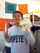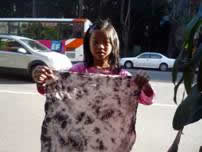 當天我們和老師ㄧ起去布街上的銀冠布行,老闆對我們很熱情,他們幫我們準備了橡皮筋、彈珠、石頭等染布用具,而且老闆家人很細心的指導我們,我們要謝謝他們讓我們能動手染布。 --啟惟 |