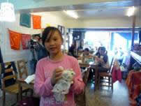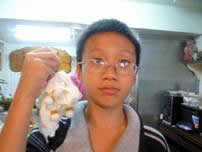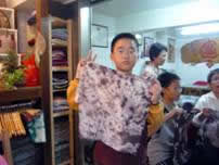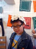 禮拜三的下午是一個晴朗的好天氣,秀蘭老師和雅琴老師帶著我們去『銀冠布行』採訪,採訪完後,老闆娘教我怎樣綁布,我綁一顆像饅頭的布,硬梆梆的,接著放下鍋子裡染,染完後就是揭曉染布的圖樣了!我打開後我看到的竟然一片白色,只有一點點的顏色,染布失敗了,雖然染布失敗了,但我不會沮喪,因為我相信下次我一定會染得更好的! --宜諠 |