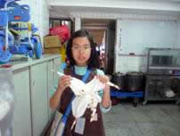 星期三的時候,老師帶我們去布街訪問銀冠的理事長,在訪問時,店裡的人教我們怎麼綁,在過程中,我覺得拆橡皮筋的時候好辛苦,不過,我覺得染布很好玩又有趣。 --恩綺 |