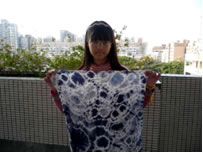 今天雅琴老師和秀蘭老師帶我們去訪問促進會的理事長─陳子木理事長,還讓我們體驗染布的樂趣,趁其他人還在訪問時,店裡的人教我們染布的技巧,有綁彈珠、木棍、石頭等,做完的成品,理事長稱讚我做得很棒,中間還開了一朵大花呢! --庭萱 |