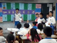 利用週五下午的共同時間,我們開始進行推廣,大家的心情都很緊張,深怕講錯話和台下同學的目光,所以上場前又臨陣磨槍一下,拿著書面資料猛背資料,或問老師這樣講好不好。鐘聲響起,我們正式上場了。