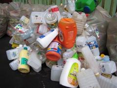 - 塑膠容器(具回收標誌):PET(如礦泉水瓶)、PVC(如沙拉油瓶)、PE(如牛奶瓶)、PS(如養樂多瓶)等材質用來盛裝食品之容器或外包裝盒等。