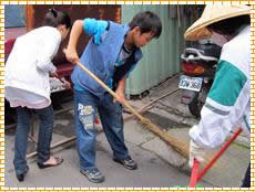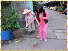 掃街時,朋友有來幫我,陪我一起做維護社區整潔的工作,這樣邊聊邊掃,很有趣。所以當中就算別人在我的面前罵我,害我心情很低落,也會因為好朋友的安慰,讓我繼續開心的跟志工阿姨們一起清掃。掃街完,我發現掃街是件有很多樂趣的事,一點也不無聊,真是好好玩。 |