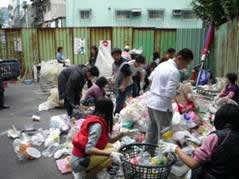 志工團隊們不論晴天或下雨都會進行回收,洪里長表示在回收時常會遇到的困難是有些里民會將垃圾和回收物放在一起丟出來,害志工們還要再分類一次。但其實大部分的里民們都是很支持我們的志工隊,志工們只要聽到里民們一些溫馨和感人的話,馬上就又會信心十足的做下去喔。
