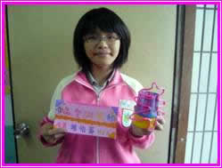 我會選擇這個作品是因為我很會畫畫,所以我才會選擇這個作品。 那天我在做作品時,我有遭遇到很多困難的問題,就是要切割寶特瓶的瓶中時,我一直切不下去,可是有一個六年級的一個姐姐就幫我一起切割。 最後我們做完時,我的心情感到有一種成就感和信心耶,我的心情超開心的耶! |