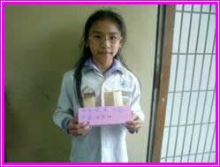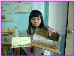 今天老師叫我們做環保作品,我做的是「CD架」,材料是:強力膠、紙板、美工刀、剪刀、信紙。我一開始怎麼做都做不好,因為我用的是飲料盒,所以不行,後來老師叫我用紙板,而且還在我身邊指導我、幫我,最後終於完成了。真是辛苦。不過我也了解,有些東西看起來很容易,事實上卻很難,我很高興也很喜歡這個活動呢!謝謝老師讓我們體驗親手做這個環保作品的樂趣。 |