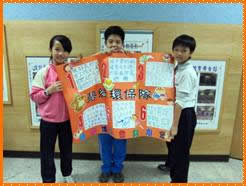 這天我們準備了很多製作海報的材料,包括海報、彩色筆、膠水和剪刀等。老師也提供了很多過去的廢教具,像是數學圖卡和貼紙,老師也很貼心的幫我們把圖畫紙裁成各種形狀方便我們將環保點子寫在上面。大家準備就緒後就開始分組進行了。製作過程中我們難免有些紛爭或是意見不合的時候,但是想到是為了環保盡一份心力,這些小困難我們都是可以一一克服的。