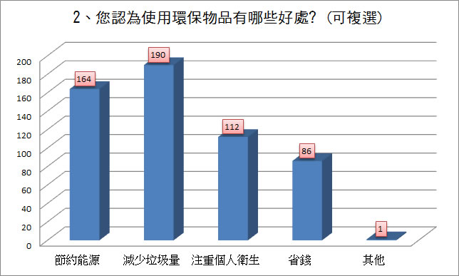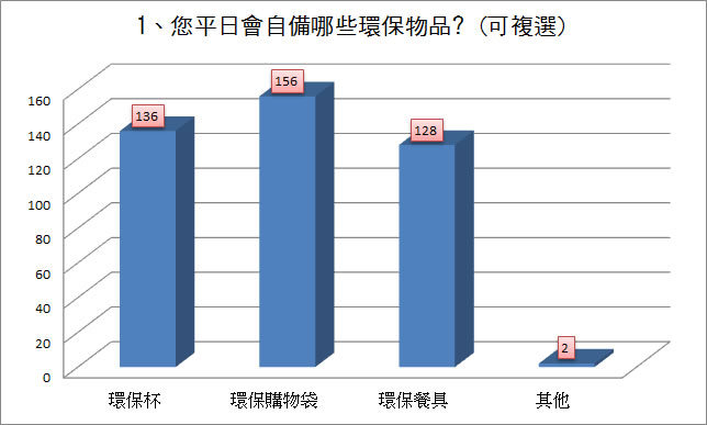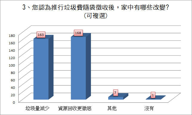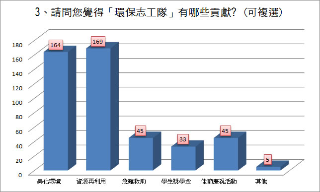 前兩高票者為「資源再利用」有169票、「美化環境」有164票。 |