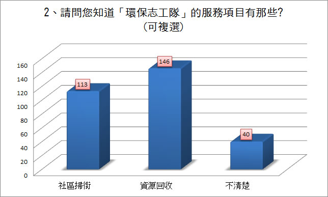 - 民眾可能覺得環保志工隊最主要的服務內容是將物品徹底分類,如此回收工作就能達到資源再利用的功效。