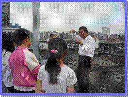 今天謝主任帶我們上去敬業樓頂樓參觀風力發電機,我到上面才知道,原來風力發電機是那麼的壯觀!所以我拿著相機到處拍,而有些人則是在聆聽謝主任的講解!等訪問完,謝主任還開玩笑的說:還有什麼問題要問的嗎?我們回答:「沒有!」主任居然開玩笑的說:『啊!問題這麼少呀!我準備很多資料要等你們問耶!』今天的參觀真讓我受益良多!