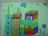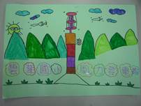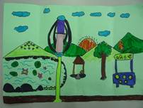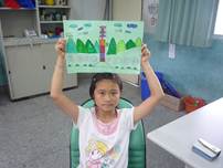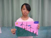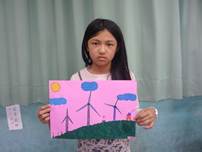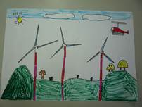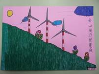 我畫了好幾座山,畫到手都痠了,還畫了這次主題的重點-風力發電機,以及一些背景。在畫的當下,我深思熟慮的想要畫些什麼,最後我終於完成了,讓我有一種成就感,老師還稱讚我畫得很美呢! |