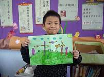 這次上網博時,老師要我們畫風力發電機,老師要我們先上網找風力發電機,之後再畫背景就要上色了。我畫完時老師說我畫的沒有動植物,沒有生氣的感覺,之後我就加了一點小花,所以很久才畫完。 |